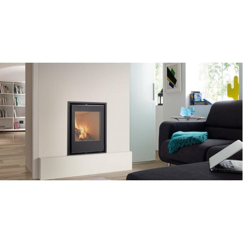 Дровяная топка со стальным корпусом, внутренние стенки из вермикулита. Представленная модель отличается удобной дверцей, которая может открываться как влево, так и вправо. Широкая дверь, большой обзор огня. Дверь оборудована окном из жаропрочного стекла, выдерживающее температуру до +750 градусов. Выдвижной зольный ящик облегчает процесс по уходу за прибором.