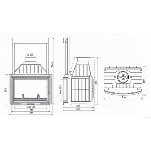- Полностью чугуннаяКварцевое стекло (выдерживает 700 градусов)Диаметр дымохода 200 ммФасад 710 ммДрова 60 смНоминальная мощность 17 КВтВес 200 кгКПД 75,9%Произведено во Франции