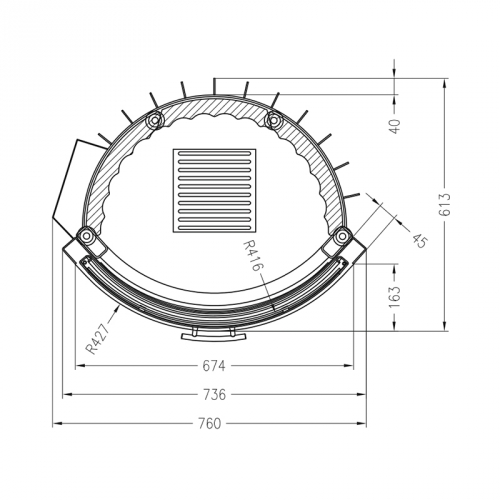 В топке имеется система длительного горения и система чистого стекла. Имеется возможность для подвода дополнительного воздуха из других помещений или улицы для процесса горения, что сводит к минимуму выжигание кислорода в помещении во время работы камина.