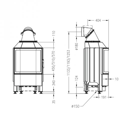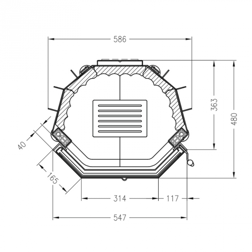 - Опциональная комплектация дополнительной задней дверцей для закладки дров из подсобного помещения.