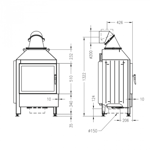 • Диаметр дымохода, мм: - 200