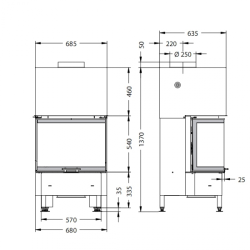 - Диаметр дымохода, мм: - 250