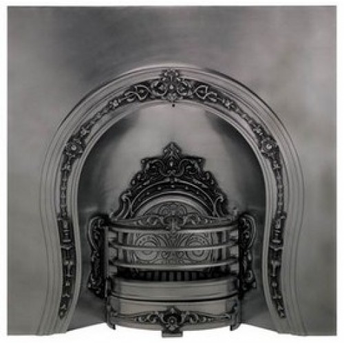 Horseshoe - открытая чугунная каминная топка в английском стиле. Расположение топки фронтальное. Компактная каминная топка из чугуна со скошенными стенками изготовлена по старинным технологиям. Она украшена литым чугунным рельефом. Данная топка может быть полированная либо черная и она может быть декорирована изразцами, расписанными в технике итальянской майолики. . Пол перед камином выложен плиткой и оформлен металлическим бортиком.