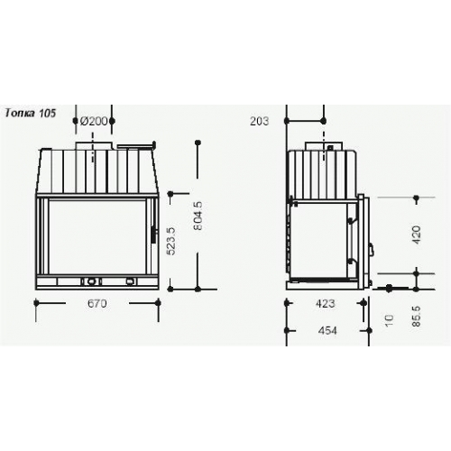 Чугунная топка Supra Altima 105 с дверцей, открываемой сбоку. Топки Altima очень мощные: 11 кВт при внешних размерах, уменьшенных до 67 сантиметров в ширину. Их исключительный КПД делает потребление топлива очень экономичным. Kit увеличитель ширины KA 105-106 позволяет быстро установить топки Altima шириной 67 см во все камины гаммы SUPRA с шириной 76. Можно установить ножки и распределитель воздуха.