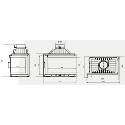 Технические характеристики:- Эффективность 15 KWЭффективность с теплогенератором 19 KWШирина 75 cmВес 129 kgКПД 76%КПД (с теплогенератором) 82%Древесины 40 cm