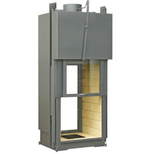 Вертикальная двухсторонняя каминная топка отличное решение для небольшого пространства. Вертикальная топка визуально увеличивает высоту и огонь становится более выразительным. Такая топка хорошо будет смотреться непосредственно в стене между двух комнат.