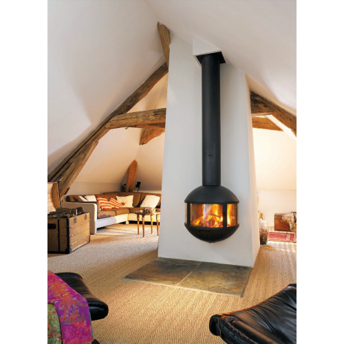 Пристенный подвесной камин от марки из Франции сможет выгодно вписаться в любой интерьер. Интересная круглая форма топки станет яркой характерной чертой любого интерьера.