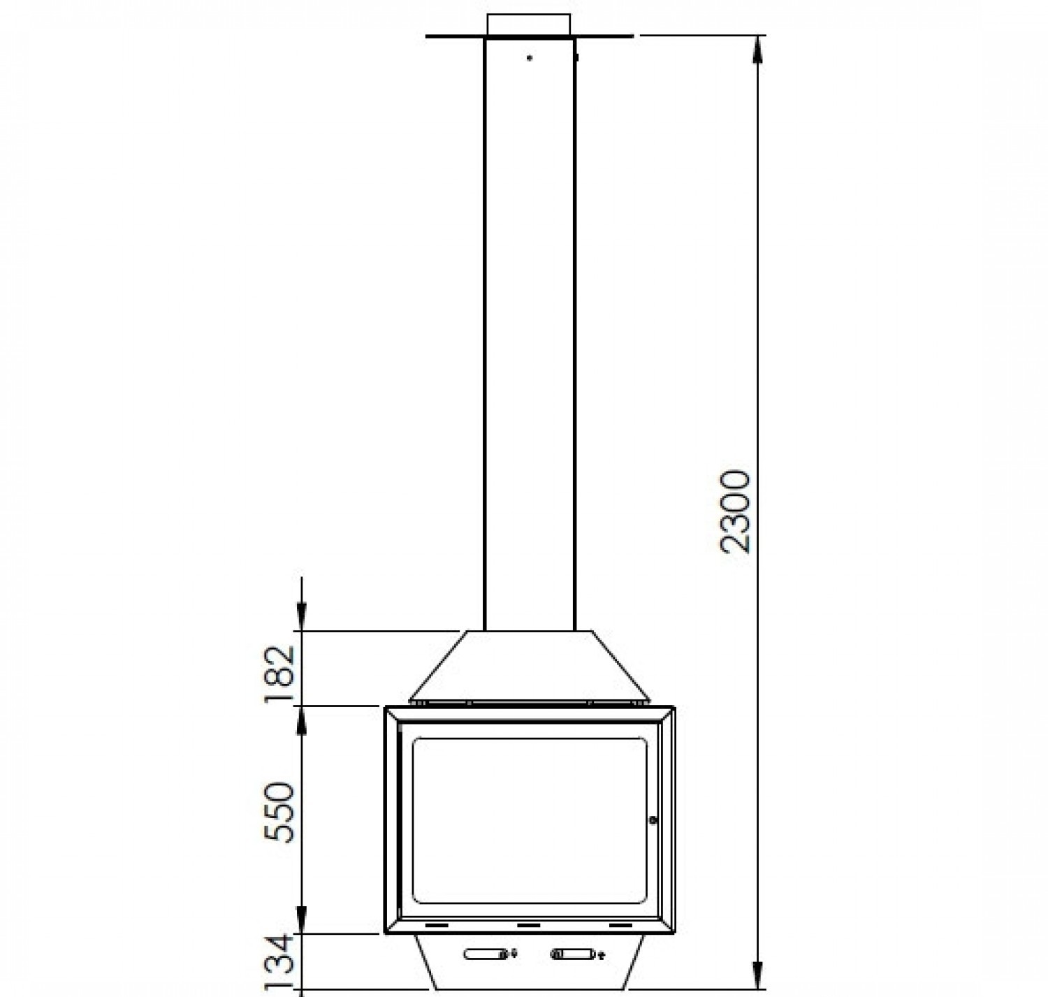 Центральный подвесной камин со стеклом и двойным верхним кожухом. Цвет - серый, кожух - RAL 5023.