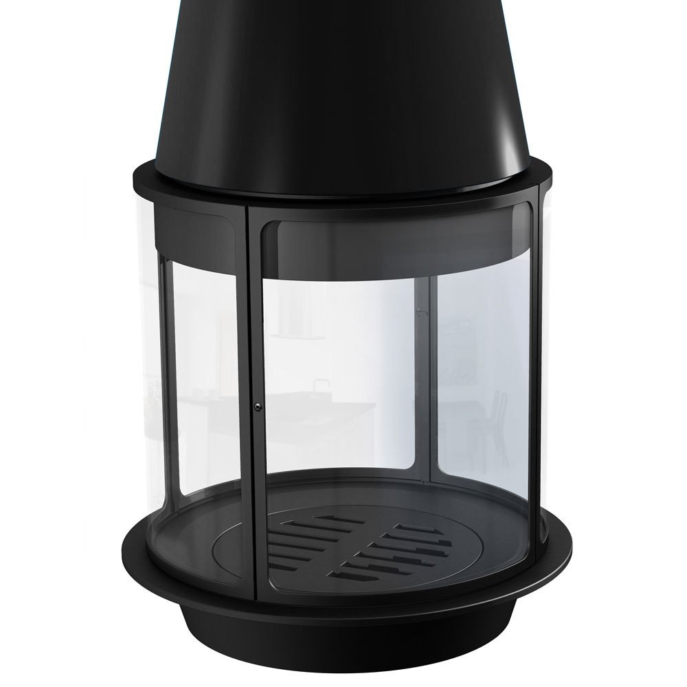 Центральный подвесной цилиндрический камин с максимальным обзором огня.