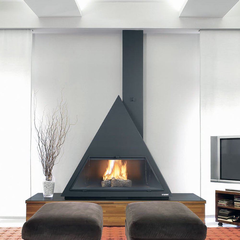 Компактный камин с прекрасным обзором огня, системой двойного дожига и внутренней воздушной камерой.