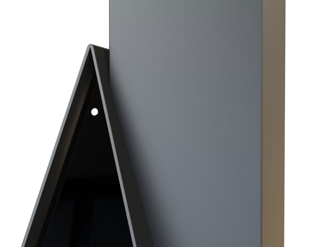 В зависимости от общего оформления интерьера каминной залы, вы можете выбрать наиболее подходящий цвет фронтальной облицовки. Любопытная треугольная форма камина отсылает наблюдателя к конструктивистским стилевым тенденциям прошлого века, получившим новое рождение в современном, а точнее даже футуристическом исполнении.