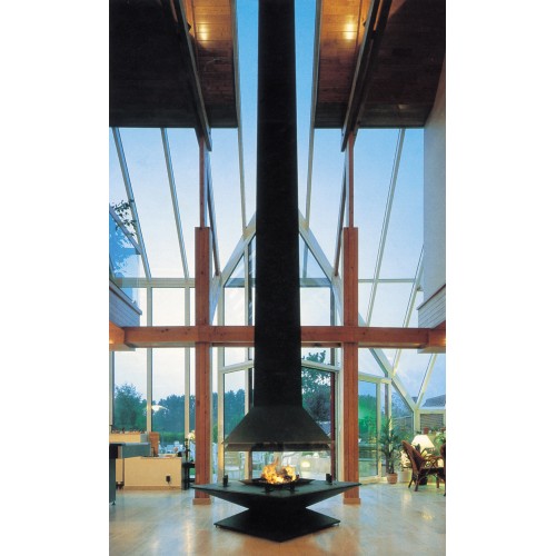 Описание: Очень эффектный центральный камин.По желанию его можно дополнить защитными экранами из керамического, жаростойкого стекла.