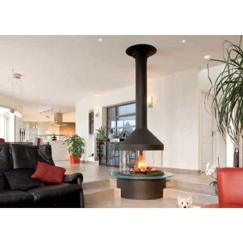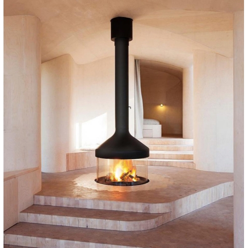 - Свободно стоящий камин прерывистого горения, с открытой топкой.