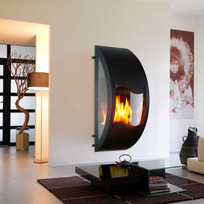 Камин пристенный, подвесной, с задним подключением дымохода.