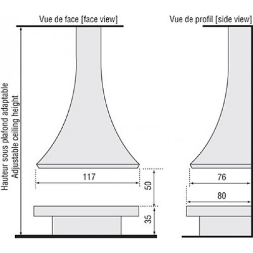 - > Все модели представлены с высоты под потолком в 250 см. Высота регулируется в соответствии с вашими требованиями, дымоходов и скатов крыши.