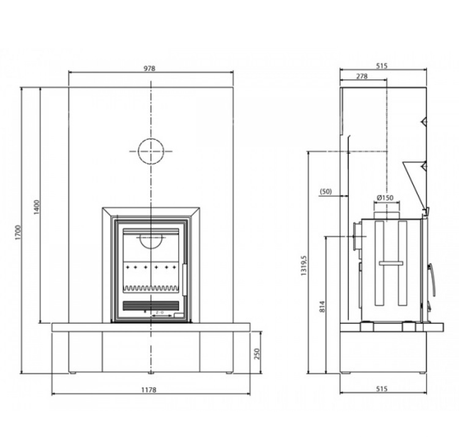 • Диаметр дымохода, (мм)