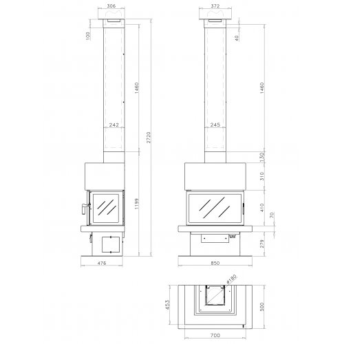 Модельный ряд каминных топок LL Calor отличается многообразием размеров и методом открытия дверцы (гильятина и боковое). Возможен забор воздуха с улицы.