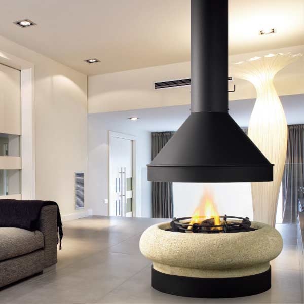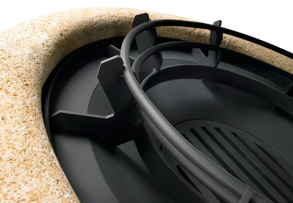 Один из самых классических образцов центральных каминов TRAFORART, который совмещает в себе металл и природный камень. Без стекла. Цвет - черный.