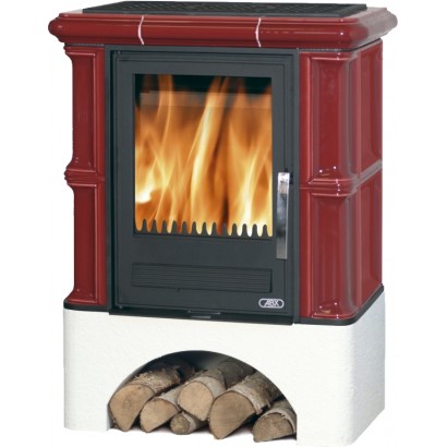 Кафельная печь Bavaria K - вставка комбо, прямой цоколь бордо, с теплообменником (6,9 кВт в воду)