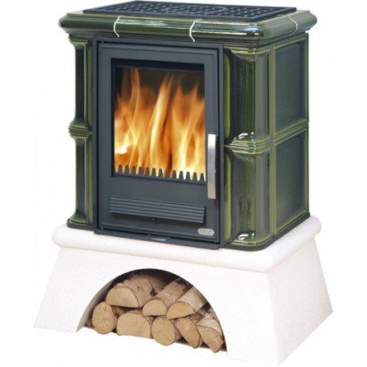 Кафельная печь Bavaria K - вставка комбо, прямой цоколь бутылочное стекло