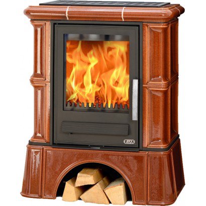 Кафельная печь Bavaria K - вставка чугунная, кафельный цоколь каштан