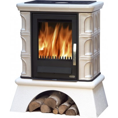 Кафельная печь Iberia L - вставка чугунная белый цоколь торф