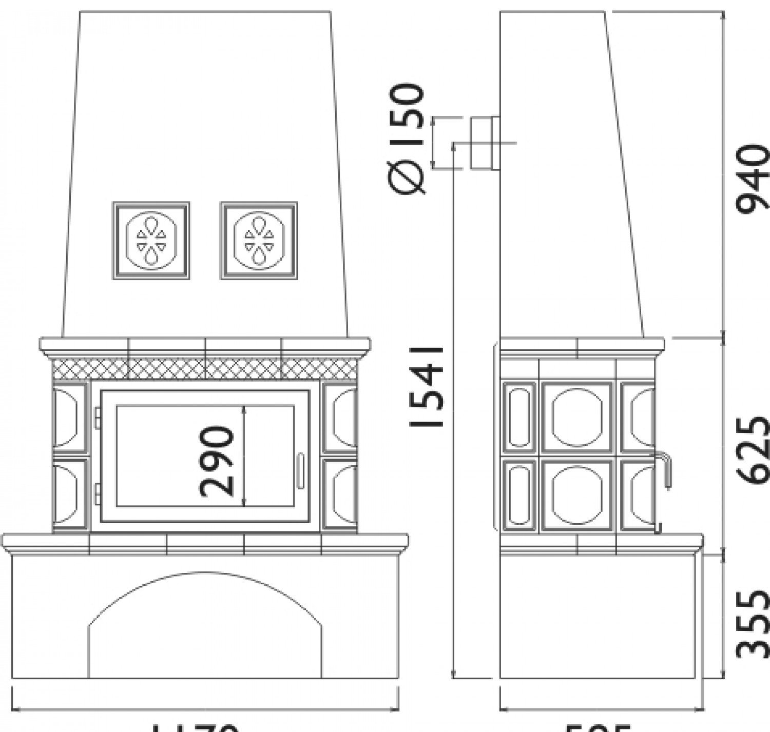 Для облицовки печи применяется печной кафель, который является наилучшем накопителем тепла, он быстро нагревается и очень долго остывает. Поэтому после прогорания дров Ваш дом будет обогреваться за счет отдаваемого тепла облицовки еще на протяжение 5–6 часов. За час печь в номинальном режиме расходует 3,2 кг сухих дров.