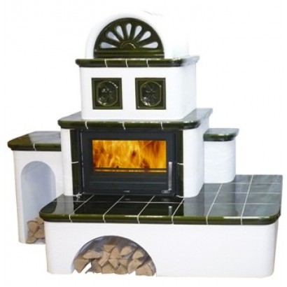 Самая большая кафельная печь в модельном ряду чешского завода «АВХ». Эта модель, безусловно, станет центральным предметом интерьера не только того помещения, где будет установлена, но, пожалуй, и всего Вашего дома. Сочетание изразцовых элементов и белой металлокерамической поверхности делает дизайн этого камина уникальным. Изготавливается в «левом» и «правом» исполнении. Камин комплектуется топкой с номинальной мощностью 10кВт. Цвет облицовки может быть коричневым или зеленым. Наличие