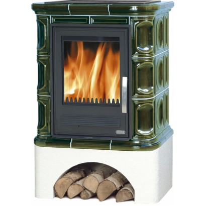 Кафельная печь Regina K белый цоколь вставка чугун