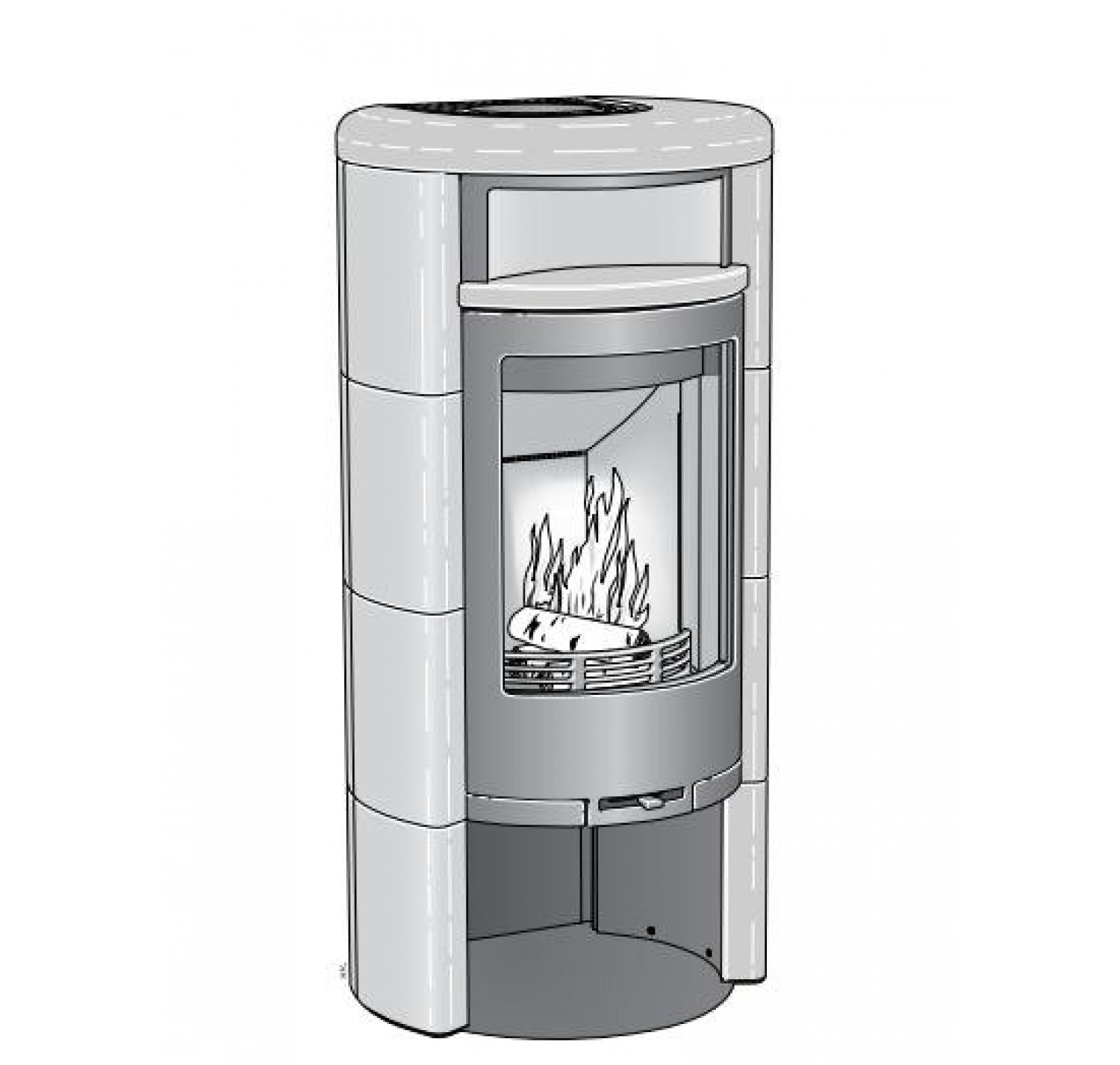 Печь-камин Contura 660К облицован песочной матовой или белой глянцевой плиткой из керамики.Серый или черный корпус камина (топка), оснащен поворотной колосниковой решеткой и выдвижным зольником.