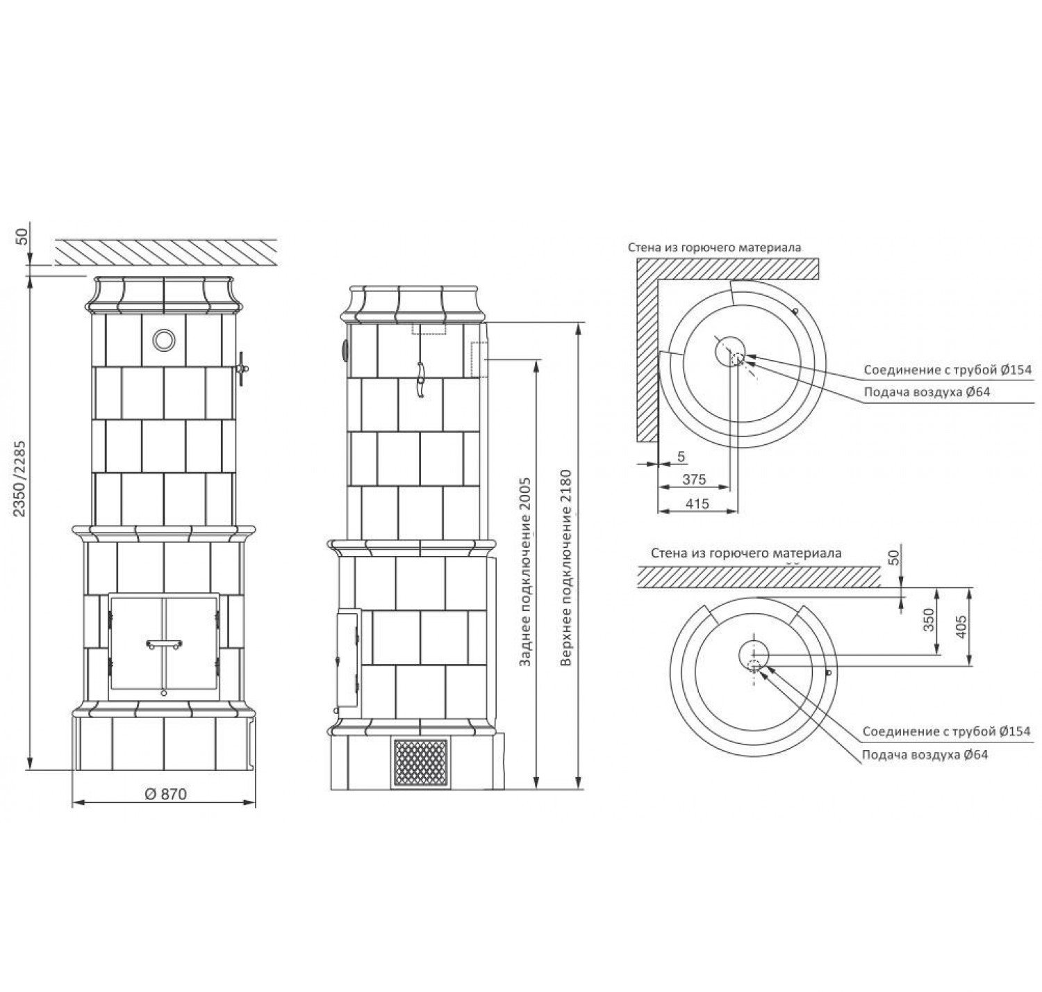 Кругая изразцовая теплонакопительная печь allmoge 524