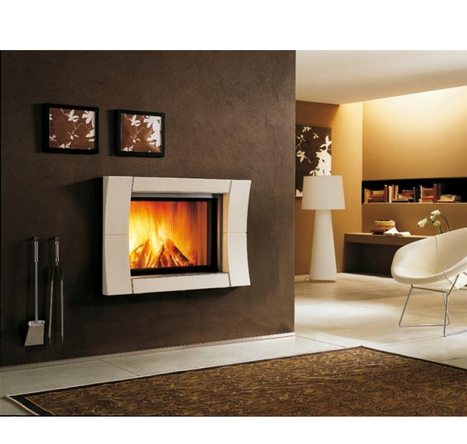 Итальянская марка Piazzetta очень часто в своих коллекциях в последнее время выпускает встроенные модели каминов. Дизайнеры компании объясняют это тем, что «модели встроенных каминов универсальны, вмещаемы в любые по размеру комнаты, занимают минимум места, а их функции очень полезны, производительность на высоком уровне». Также не стоит забывать, что мы говорим о встроенных каминах, работающих на дровяном топливе, а значит эти модели максимально приближены к классическим вариантам по обогреву, а значит способны на высоком уровне отопить весь дом.