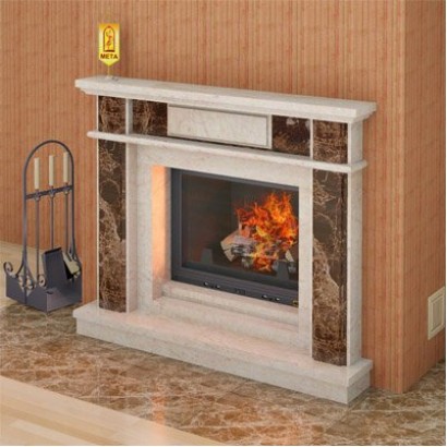 Облицовка изготовлена из натурального полированного мрамора кремового и коричневого цвета.
