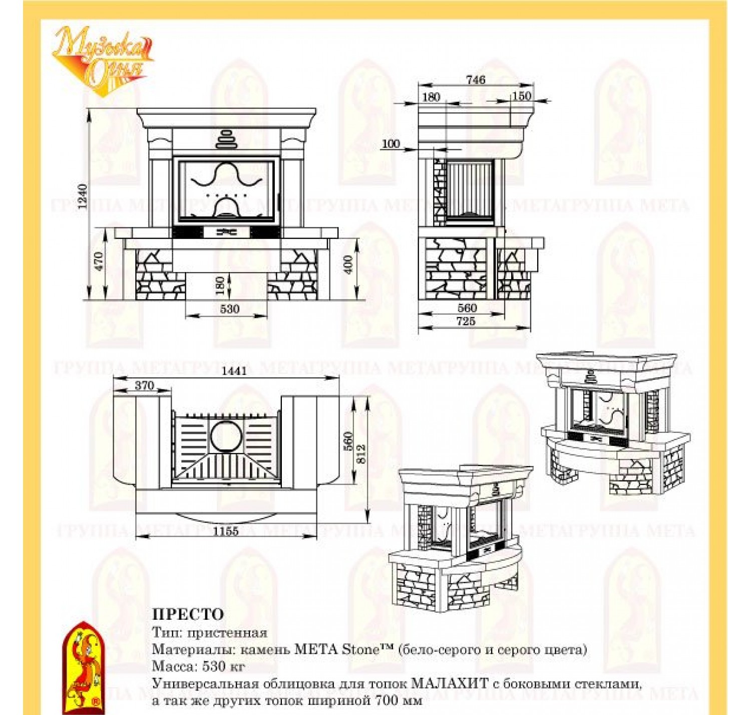 Универсальная облицовка для топок ПРОМО с боковыми стёклами, а так же других топок шириной 700 мм.