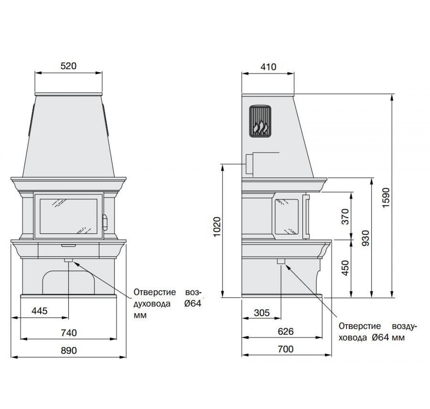 Низкая модель. заднее подключение к дымоходу.