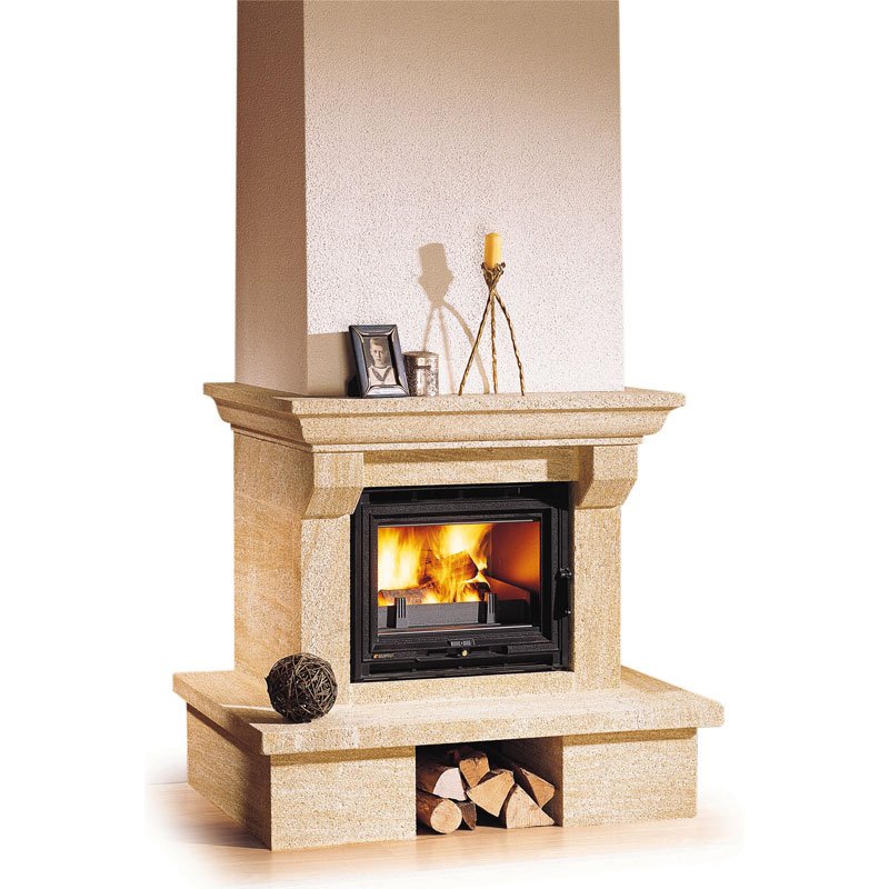 Пристенный камин из золотистого камня Castillon.
