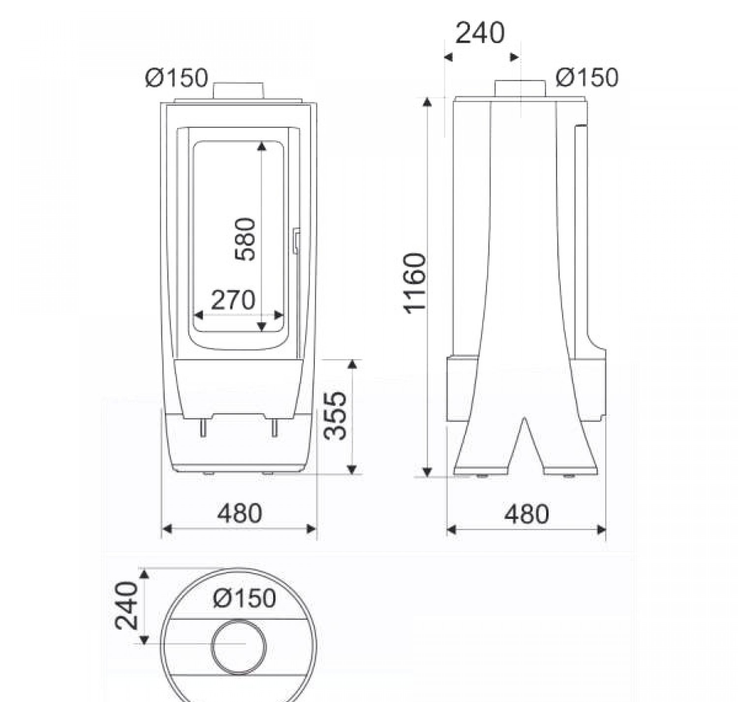 • Диаметр дымохода, (мм)