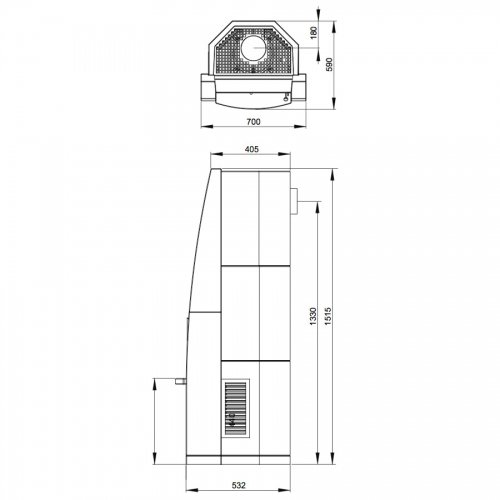 Топка изготовлена из стали и окрашена термостойким черным лаком. Внутренняя футеровка из "Thermotte ™ ". Стеклокерамическое окно во время работы топочной камеры омывается горячим воздухом, поэтому остается всегда прозрачным, так как на нем не оседают продукты горения.