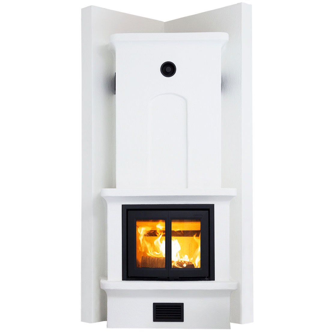 Угловая печь-камин с верхним подключением дымохода. Вставка - SK 2001 (включена в стоимость).