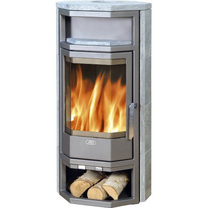 Топка этой печи изготовлена из стали, оснащена стеклокерамическим стеклом, выдерживающим температуру нагрева в 700 градусов С. Предусмотрена система двойного дожига, функция медленного горения и система «чистое стекло». Под топкой печи расположена удобная ниша для хранения дров, а в верхней части камина расположена ниша для разогрева пищи.