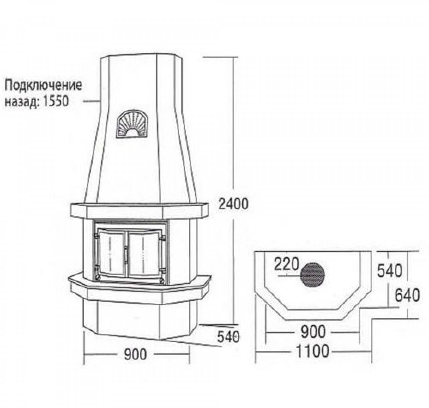 Печь-камин Мистраль оснащена большими дверцами с гнутым стеклом, создающим приятное впечатление открытого камина. Печь-камин есть в двух вариантах: пристенный или угловой.