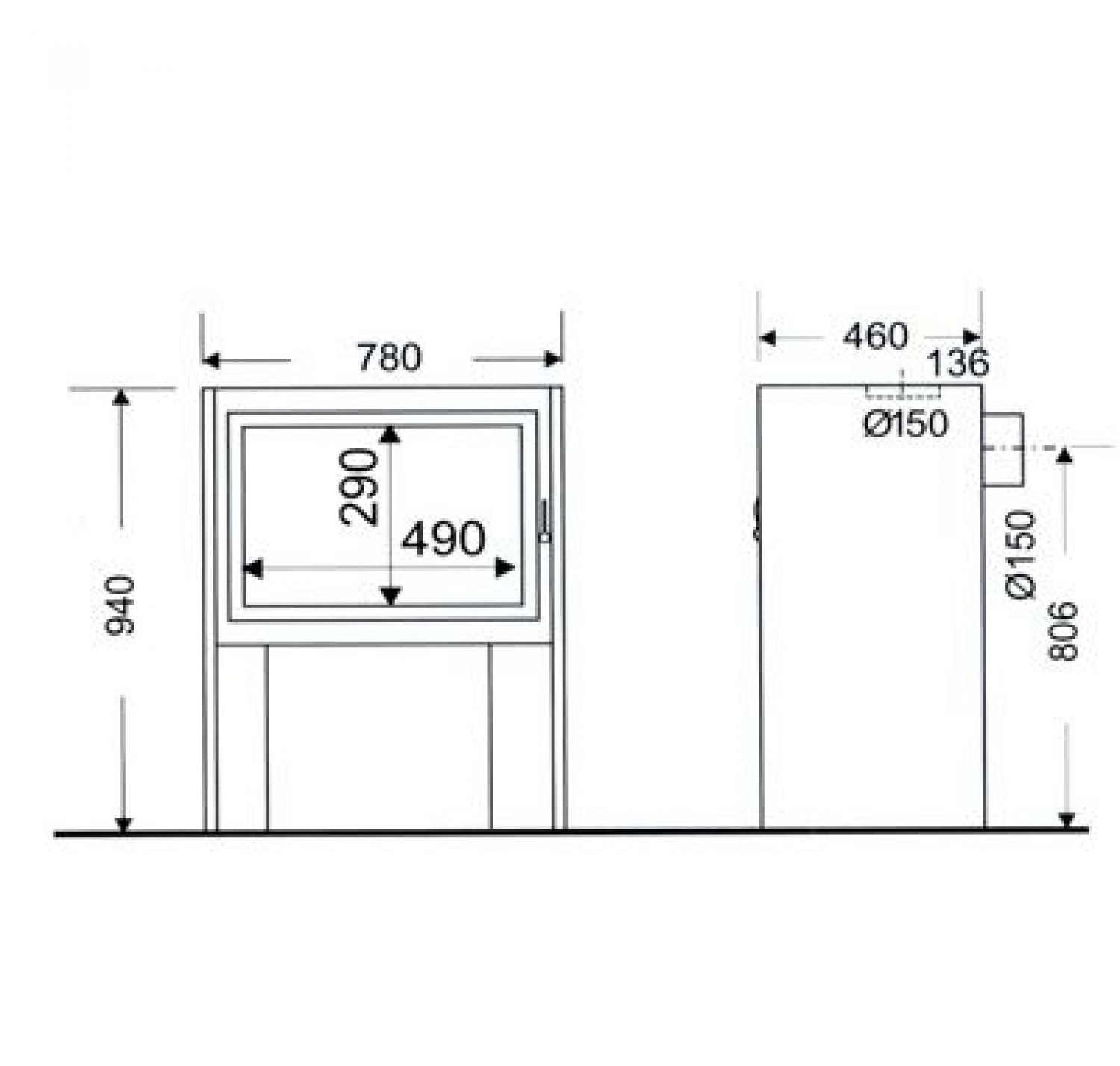 - Диаметр дымохода, (мм) 150 мм.