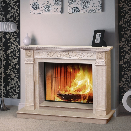 - Подходящие топки: с прямым стеклом с подъемом или боковым открыванием дверцы, открытая топка, электроочаг. В комплект входят плиты для адаптации под топку