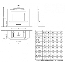 - Подходящие топки: с прямым стеклом с подъемом или боковым открыванием дверцы, открытая топка, электроочаг. В комплект входят плиты для адаптации под топку