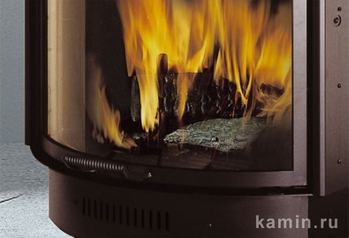 Топка с водяным контуром из толстой стали, способна производить горячую воду, поступающую в контур системы отопления и на радиаторы, а также производить горячую техническую воду. Дверца сферической формы с поъемом вверх. Камин может устанавливаться как пристенный или как фронтальный.