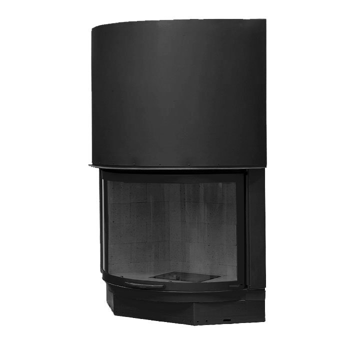 Панорамная, круглая топка. Цвет - Черный. Кирпичи - черного цвета.