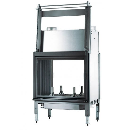 Чугунная вставка. 1 дверца с подъемом, 1 дверца открывается вбок. Выпускается с ножками.