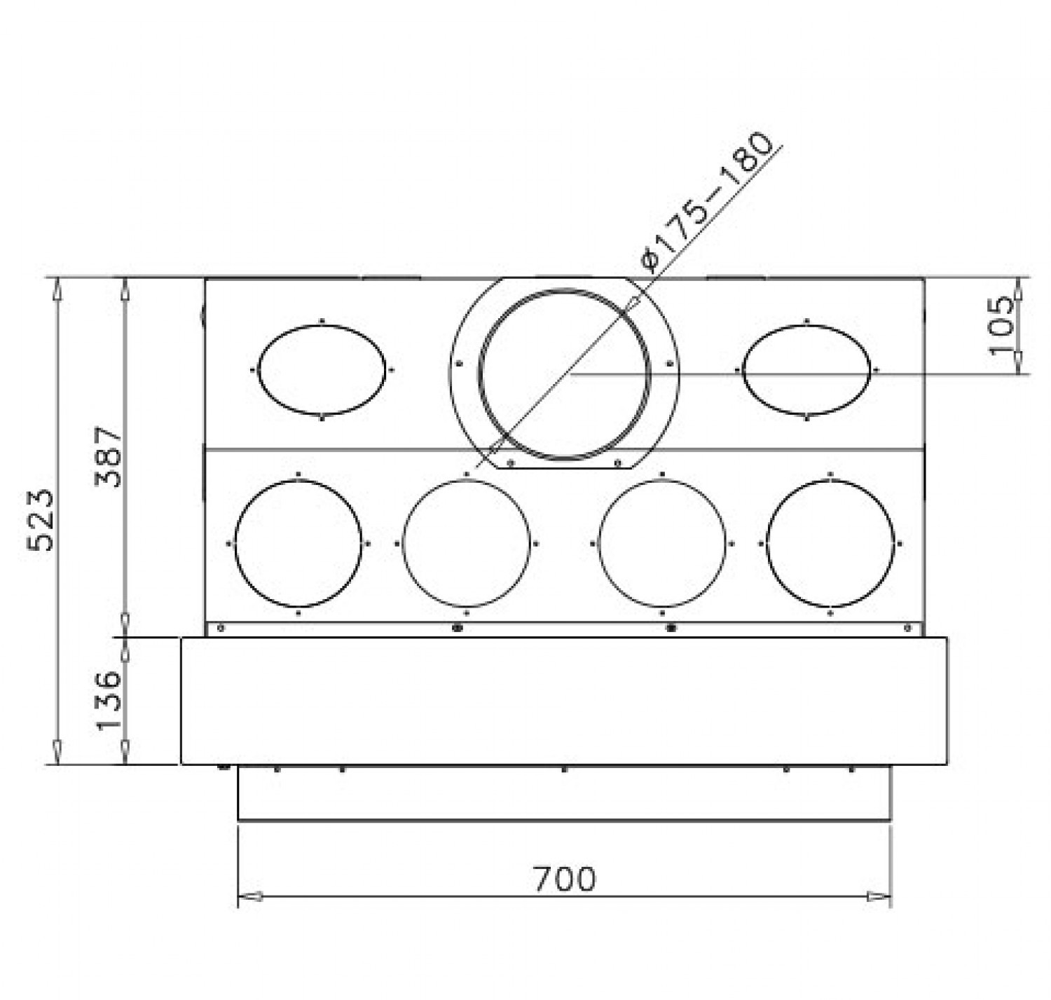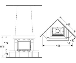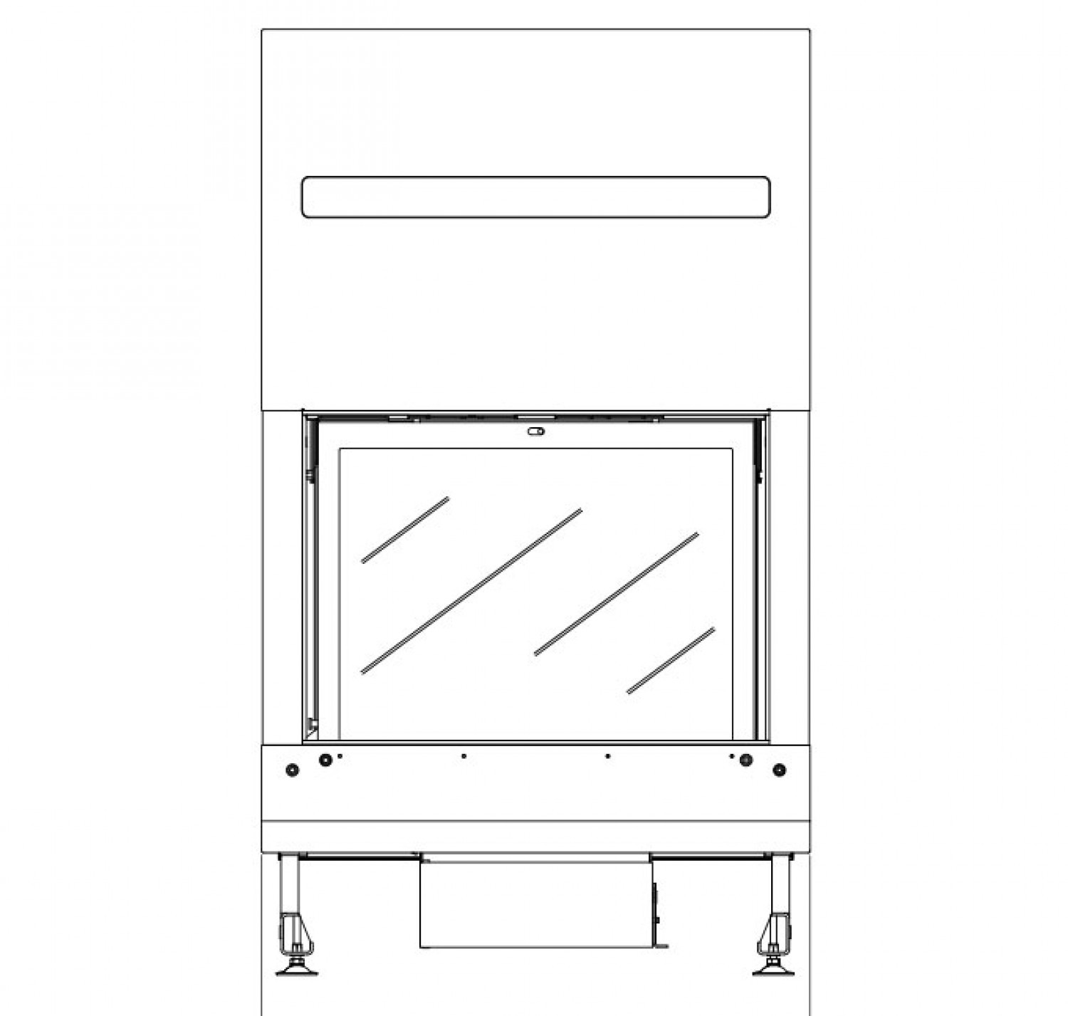 Односторонняя стальная топка с плоским стеклом. Дверца с подьемом вверх.