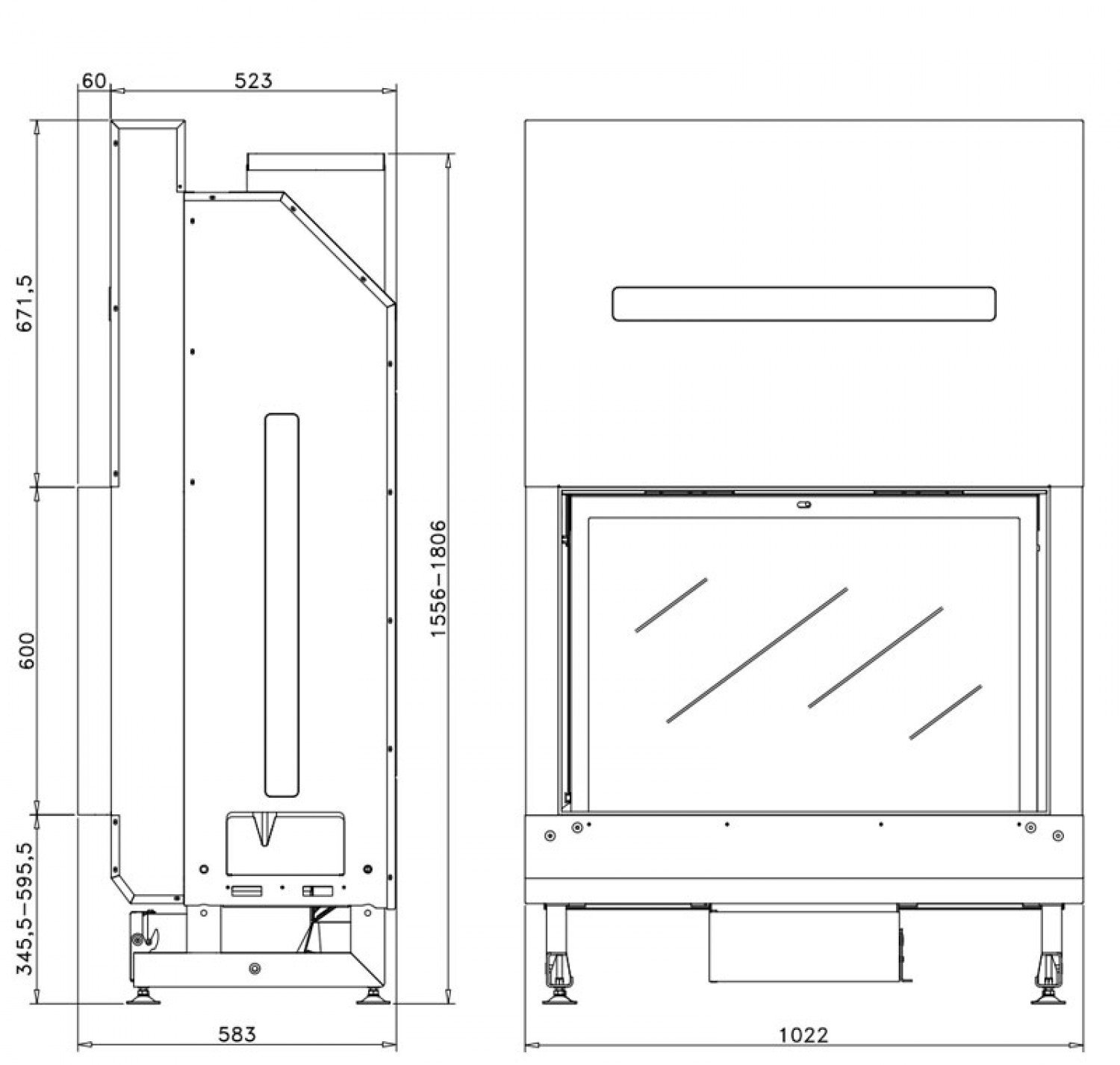 Односторонняя стальная топка с плоским стеклом. Дверца с подьемом вверх.
