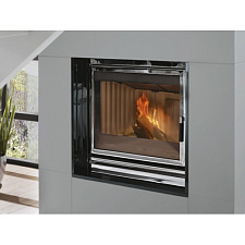 Чугунная каминная топка с дымосборником. С правым и левым боковыми стеклами. Цвет - серый.